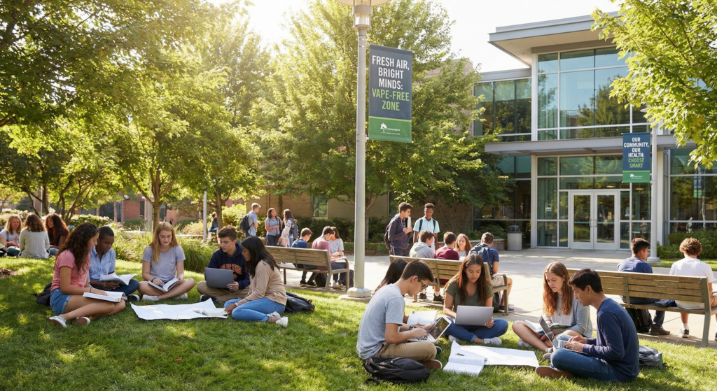 - Clear signage: Post visible “Vape-Free Zone” markers throughout campus, reinforcing the message in bathrooms, locker rooms, and outdoor areas